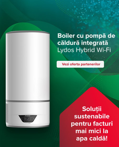 Lydos Hybrid WiFi este primul încălzitor electric pentru apă caldă menajeră, din gama Ariston, cu tehnologie hibridă. Pompa de căldură cu care este dotat permite reducerea la jumătate a costurilor pentru încălzirea apei, față de un încălzitor standard de apă, din clasa energetică B**.
